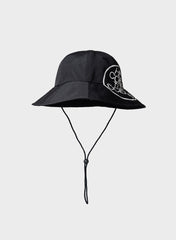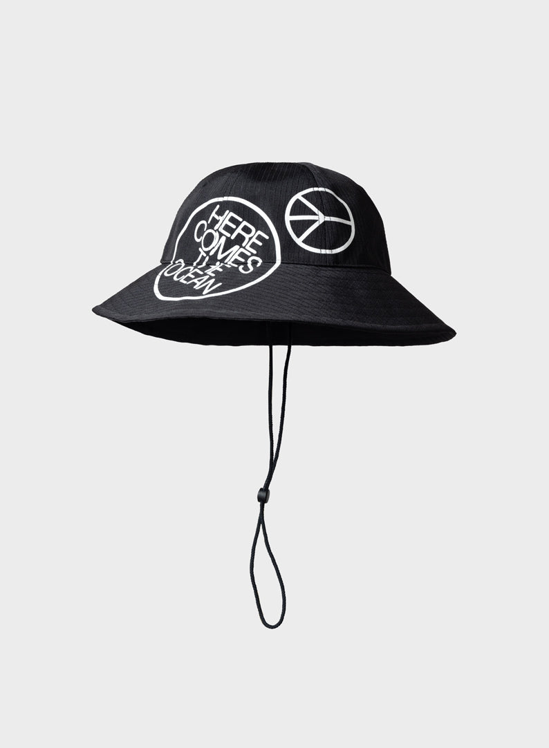 Het ontwerp is een kruising tussen onze favoriete soorten hoedjes; de rand van een vissershoed, de kroon van een basketbal pet en geeft door de waterdichte laag net zo veel bescherming als een regenhoed.